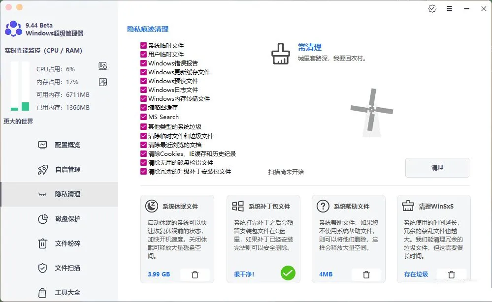 系统清理:一键清理垃圾文件、注册表冗余、系统缓存
