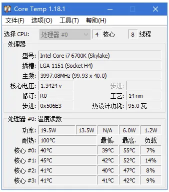 [软件名称]: Core Temp 监测和显示CPU温度v1.19.5