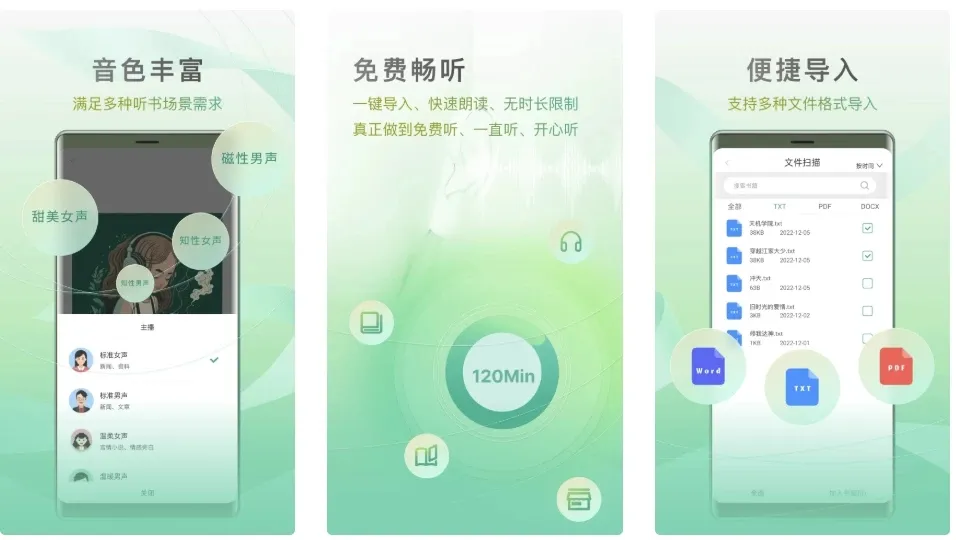 听读一体:在线音频与电子文本实时同步,支持倍速播放、定时关闭、语速与音色自选,夜间深色模式自动切换