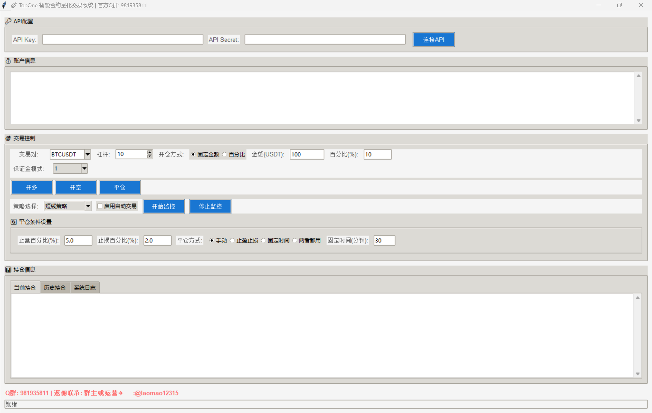 本产品支持手动止盈止损,支持固定金额开仓,百分比开仓。支持止盈止损平仓,手动平仓,固定时间平仓等。所选策略都是经实盘验证的策略,功能强大。